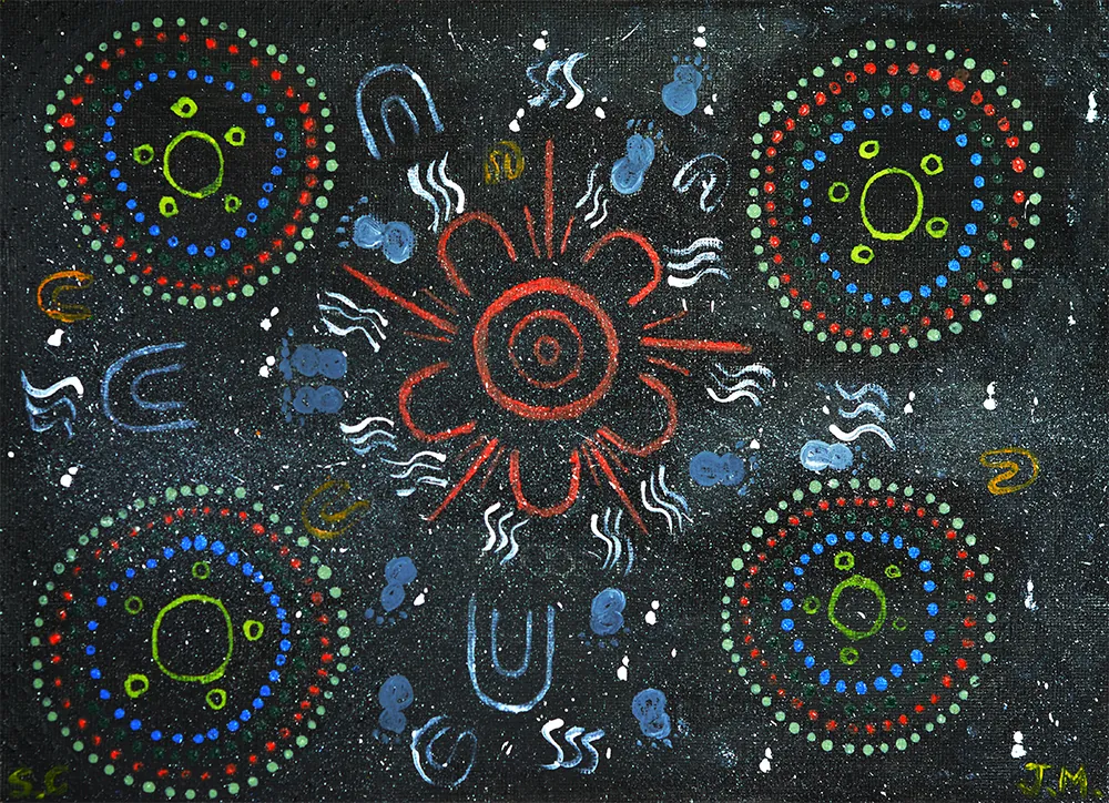 Our logo is a powerful representation of how the research team, community Elders, youth workers and service providers work together to connect young people with their culture and improve their sleep and social and emotional wellbeing. The artwork, “Let’s Yarn About Sleep” was created by First Nations community members and represents the LYAS program and our mission.